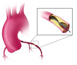 O objetivo do tratamento consiste em restituir o fluxo vascular normal, e assim a reverter os sintomas decorrentes do hipofluxo; pode ser realizada apenas com o uso de balões ou se necessário com implante de stents.
